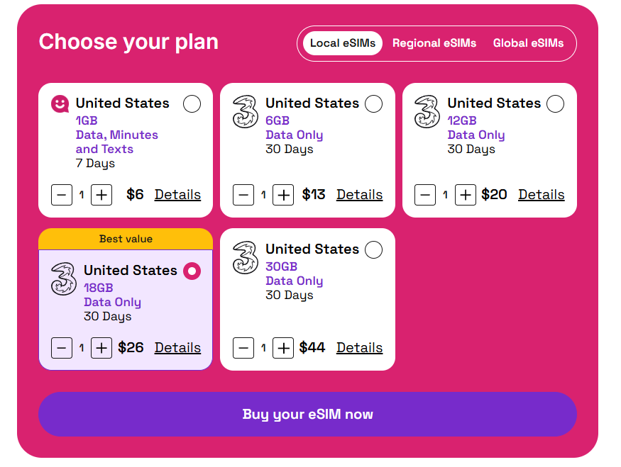 Step 3 – Select your preferred eSIM plan, add to cart, then click Buy Now