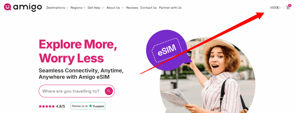 Step 1 – Visit the official Amigo eSIM website (amigoesim.com)