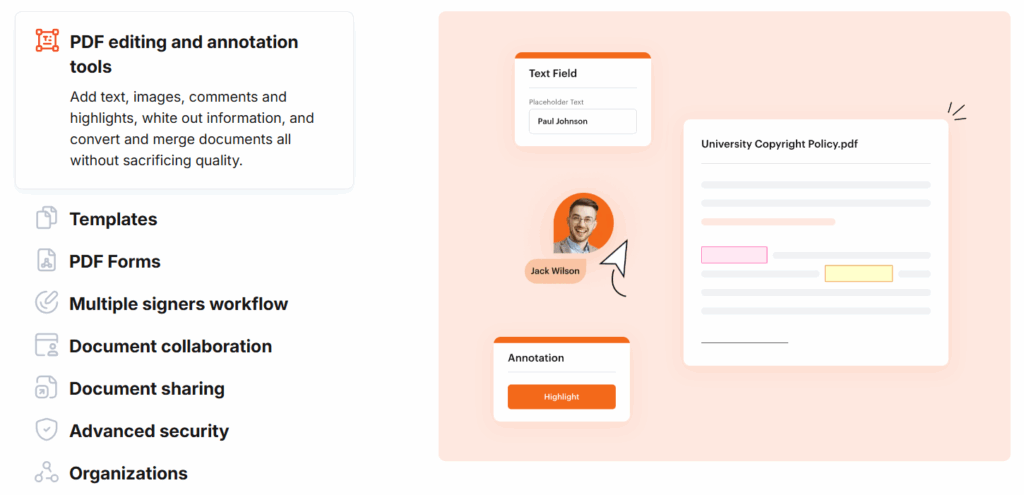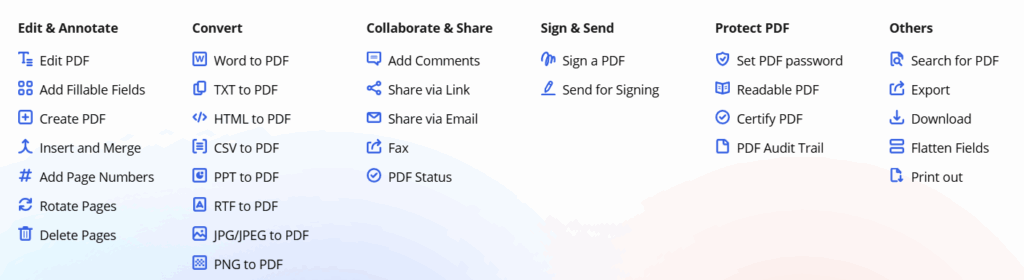 Advanced PDF tools, fillable forms, and team collaboration for freelancers.