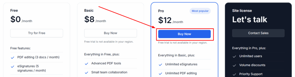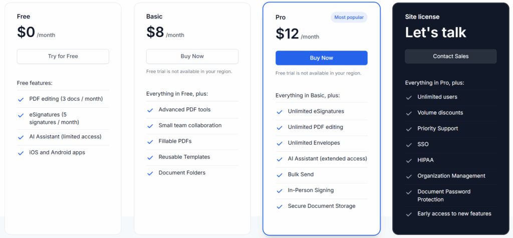 DocHub’s Site License plan offers custom pricing based on your team’s size. If you manage many people or non-profit work, reach out to sales. They often have discounts for educational institutions, healthcare organizations, and large-volume buyers.